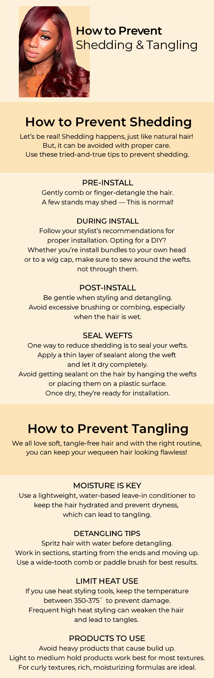 For deep wave & Burmese curly: twist or braid at night to preserve waves.